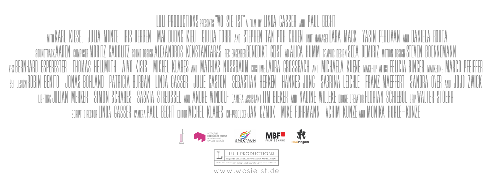 Zögern Sie nicht uns anzusprechen. Gern stehen wir Ihnen für ein Gespräch über unseren Film WO SIE IST zur Verfügung. So wie es für Sie ein Gewinn ist unsere spannende Filmproduktion entdeckt zu haben, ist für uns Ihre Pressearbeit von großer Wichtigkeit. Bitte verschaffen Sie sich in unserer “Pressemappe WO SIE IST” einen ersten Eindruck über das Potential unserer Geschichte. Hier finden Sie Zugang zu hochauflösendem “Bildmaterial”, dass Sie zu Pressezwecken verwenden können.
